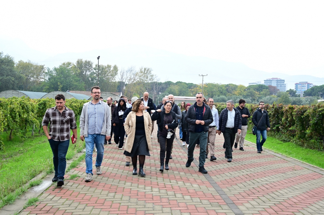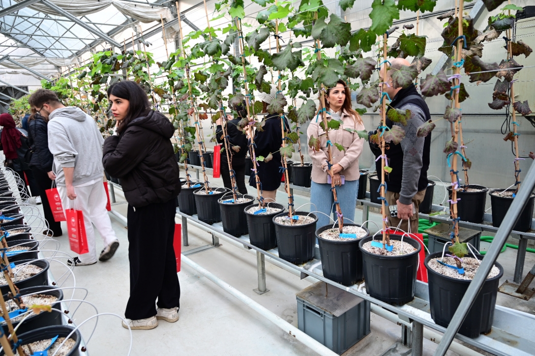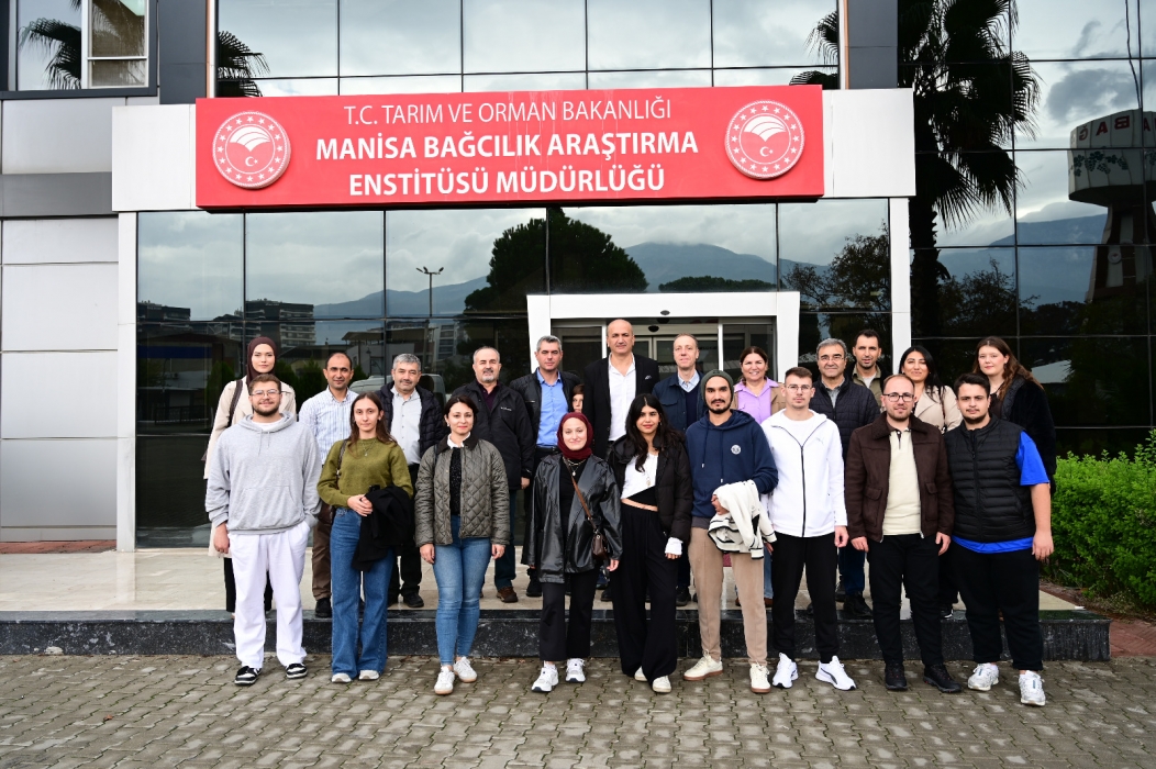Teknik gezi kapsamında, Manisa Bağcılık Araştırma Enstitüsü Müdürlüğü uzman personelleri tarafından öğrencilerimize; kurumda yürütülen üzüm ıslah çalışmaları, bağ yetiştirme teknikleri, kuru üzüm ve alternatif üzüm ürünleri üretimi, topraksız ortamda asma yetiştiriciliği, asma genetik kaynakları ve bitki sağlığı konularında kapsamlı bilgiler aktarıldı.
